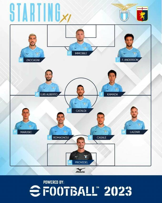 «Лацио»: Проведель, Марушич,Романьоли, Казале, Лаццари, Катальди, Луис Альберто, Камада, Дзакканьи, Фелипе Андерсон, Иммобиле