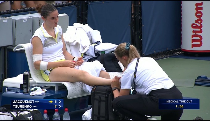 После первого сета француженка брала медицинский тайм-аут.