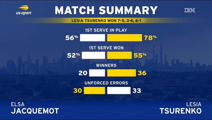 Это была первая встреча между теннисистками. Леся в девятый раз сыграла в основе US Open и только в четвертый смогла преодолеть первый круг.