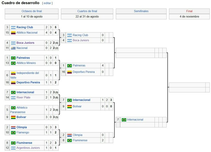 Таким образом, по сумме двух встреч «Интернасьонал» выиграл со счетом 3:0 и вышел в полуфинал, где сыграет против или парагвайской «Олимпии», или еще одной бразильской команды «Флуминенсе».