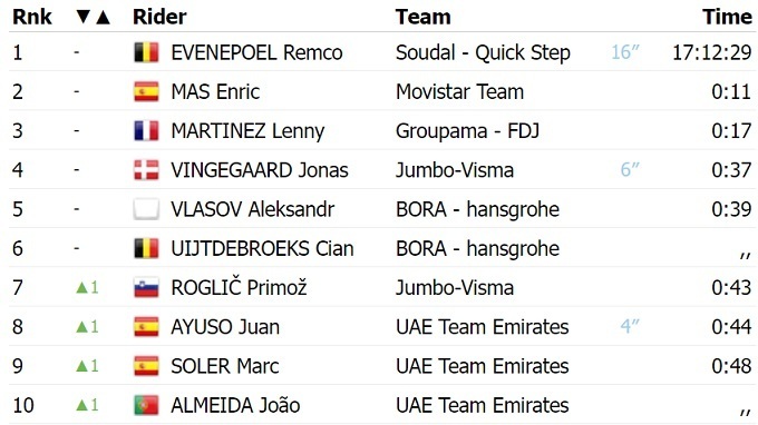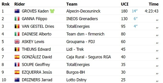 Для Гроувза это вторая подряд победа на нынешней Вуэльте – вчера он выиграл четвертый этап. Красную майку лидера общего зачета сохранил на своих плечах действующий чемпион гонки, бельгиец Ремко Эвенпул из «Soudal Quick Step».