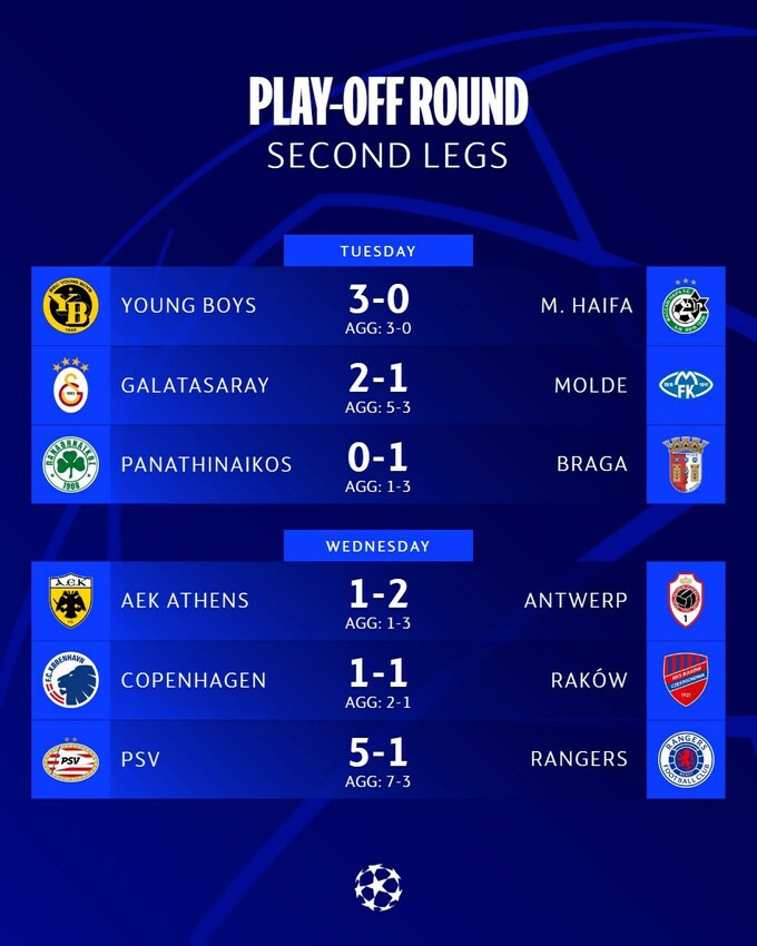 Проигравшие команды – АЕК, Ракув и Рейнджерс – переходят в группу Лиги Европы.