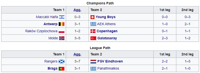 Бельгийский Антверпен во второй раз переиграл греческий АЕК (2:1), а нидерландский ПСВ разгромил шотландский Рейнджерс (5:1).