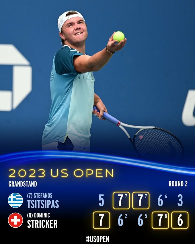В матче второго раунда грек в четвертой партии подавал на матча против 21-летнего швейцарца Доминика Штрикера, но упустил преимущество.