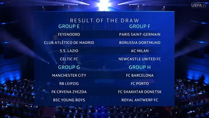 Жеребьевка группового этапа Лиги чемпионов 2023/24 состоялась вечером 31 августа в Монако.