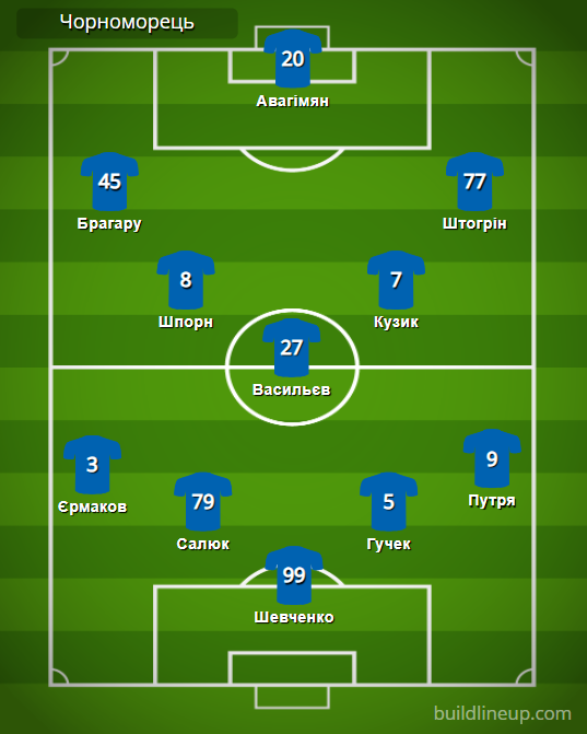 «Черноморец»: Шевченко – Ермаков, Салюк, Гучек, Путря – Шпорн (Вакула, 79), Васильев (Бойчук, 85), Кузык (Дада, 80) – Брагару, Авагимян (Хадида, 79), Штогрин (Иеде, 85).