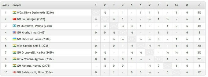Завтра, 2 сентября, в заключительный день турнира Анна Ушенина сыграет белыми против лидера, индийской шахматистки Дивьи Дешмух, во второй партии также белыми против Хампи Конеру из Индии и завершит черными против действующей чемпионки мира, китаянки Цзюй Вэньцзюнь.