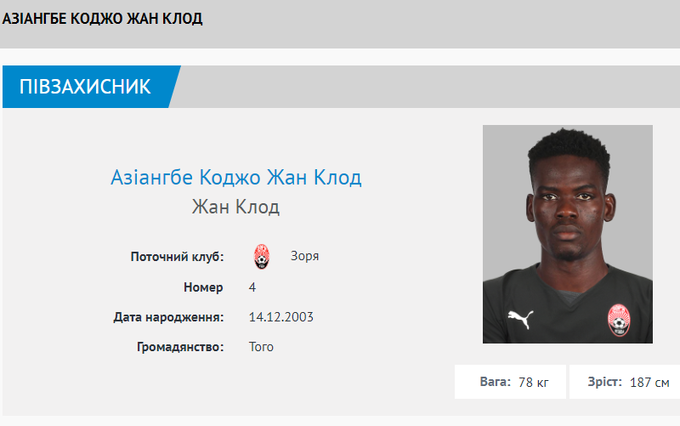 19-летний полузащитник из Того Жан Клод Азиангбе будет выступать под номером 4.