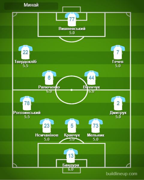 «Минай» (замены): Солдат - 5.5, Одарюк - 5.5, Панасенко - 5.5, Гуничев - 6.5.
