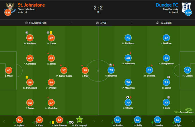 Оценки WhoScored за матч Сент-Джонстон – Данди – 2:2