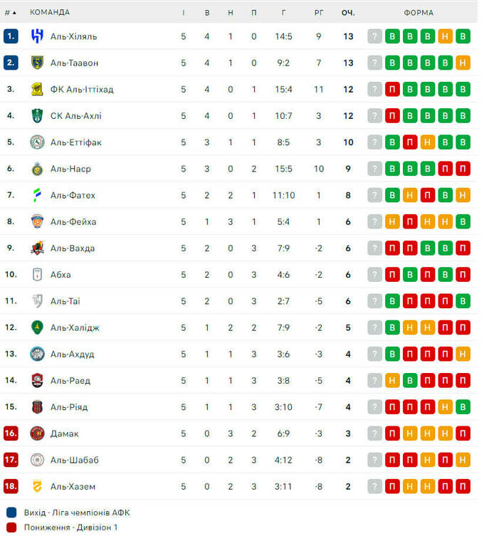 Сейчас Криштиану и компания занимают 6-е место в таблице чемпионата Саудовской Аравии. У команды 9 очков после 5 сыгранных туров.