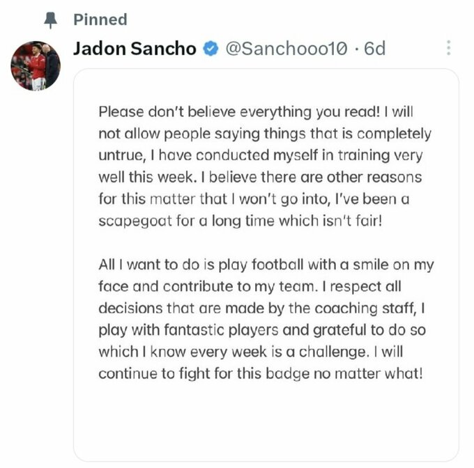 — Jadon Sancho (@Sanchooo10) September 3, 2023