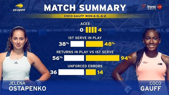 Коко Гофф (США) – Алена Остапенко (Латвия) – 6:0, 6:2