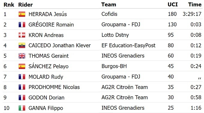 Испанский велогонщик команды «Cofidis» Хесус Эррада стал победителем 11-го этапа Вуэльты-2023 с горным финишем на Лагуна Негра. В борьбе из отрыва он опередил француза Ромена Грегуара из «Groupama FDJ» и датчанина Андреаса Крона из «Lotto Dstny».