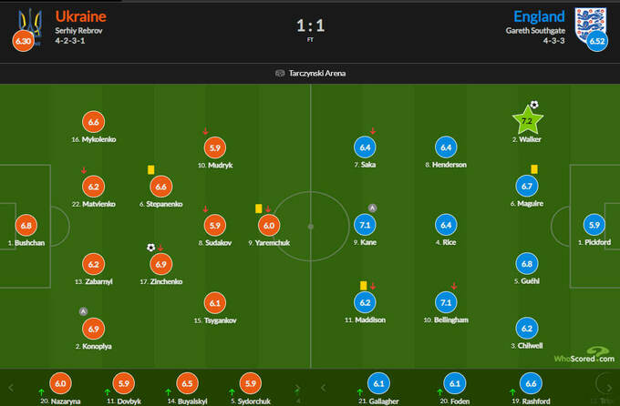 Оценки WhoScored за матч Украина – Англия – 1:1