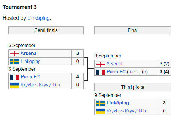 В матче за 1-е место группы 1-го раунда «Париж» выбил лондонский «Арсенал» в серии пенальти – 4:2. Основное время игры завершилось со счетом 3:3.