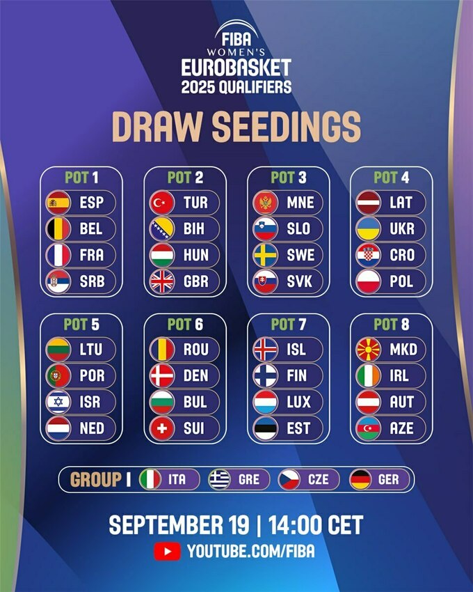 На Евробаскет-2025 выйдут 8 победителей групп, а также 4 лучших вторых места квалификации. Жеребьевка состоится 19 сентября в Мюнхене, а первые матчи отбора 9 и 12 ноября этого года.