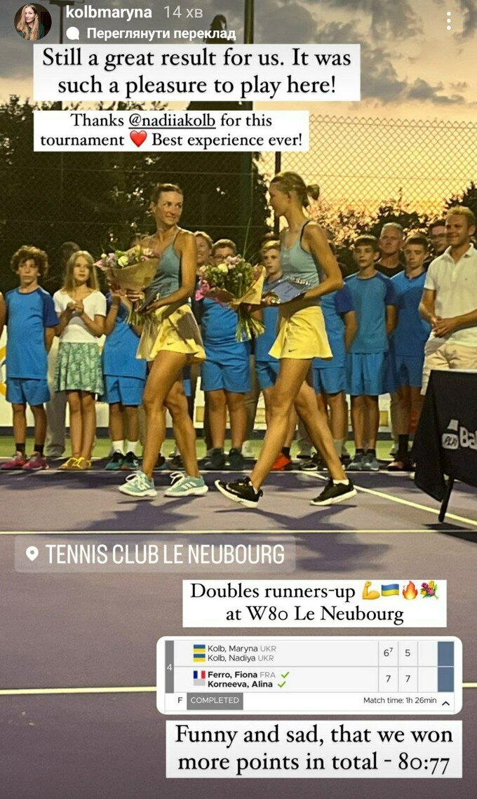 Для Надежды и Марины Колб это был третий финал в нынешнем сезоне и второй за 2 недели. В конце июня они стали чемпионками турнира ITF W15 в польском Гданьске, а 9 сентября дошли до финала в чешском Фридек-Мистеке (ITF W25) на грунте.