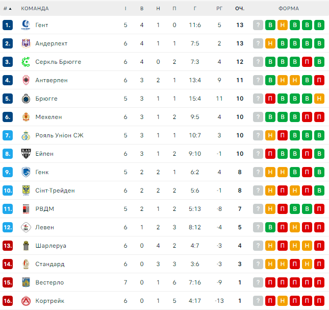 Чемпионат Бельгии. 6-й тур, 16 сентября