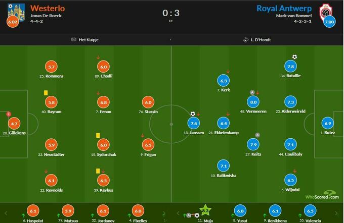В составе «Вестерло» дебютировал украинский полузащитник Сергей Сидорчук, который провел на поле весь матч. Украинец записал в свой пассив желтую карточку.