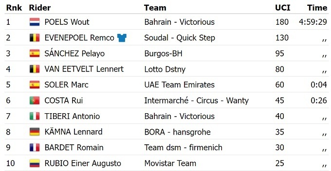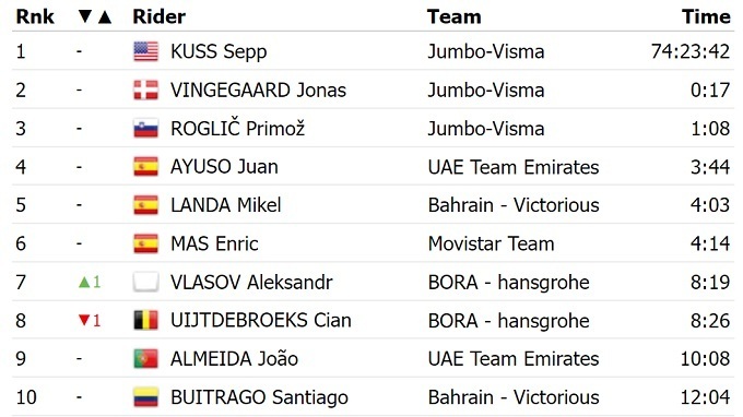 В общем зачете существенных изменений не произошло. Американец Сепп Кусс из «Jumbo Visma» фактически обеспечил себе итоговую победу. Завтра гонщиков ждет «этап дружбы» до Мадрида.