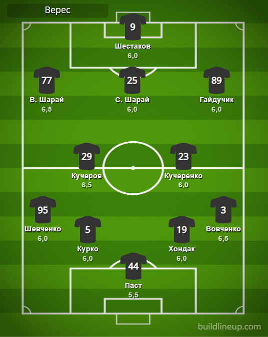 «Верес» (замены): Марусич – 6,0, Гагун – 6,0, Яго – 6,0, Свитюха – б/о, Кухарук – б/о.