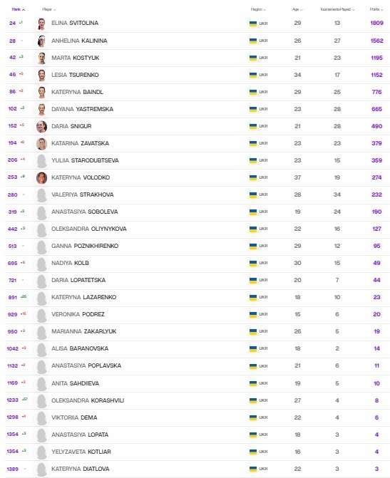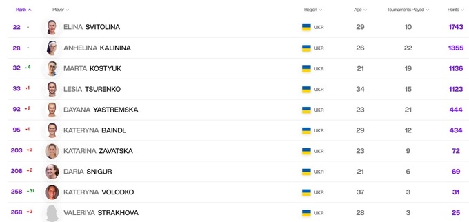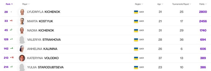 Свитолина и Калинина остались на прежних местах в Чемпионской гонке, Марта Костюк улучшила свое положение на 4 позиции, Катерина Володько – сразу на 31-ну. У остальных дела немного хуже.