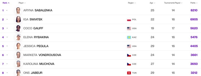 В первой десятке состоялось еще одно изменение – Джессика Пегула обошла Елену Рыбакину.