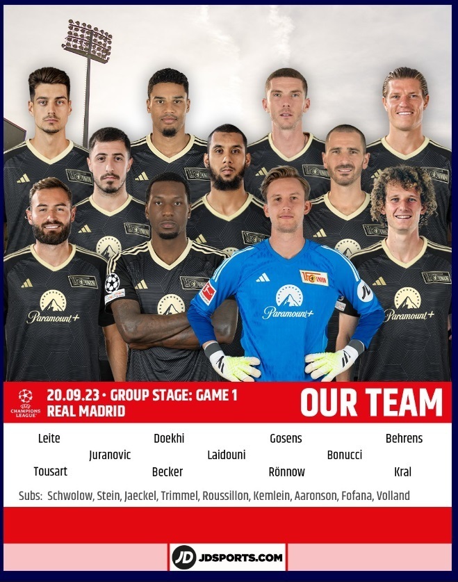 «Унион Берлин»: Рённов, Диогу Лейте, Бонуччи, Дохи, Госенс, Лайдуни, Крал, Тузар, Юранович, Беренс, Бекер