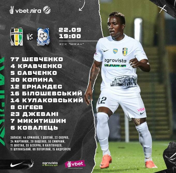 «Александрия»: Шевченко, Савченко, Ковалец, Сигеев, Кравченко, Кулаковский, Микитишин, Эрнандес, Билошевский, Копина, Джевани.