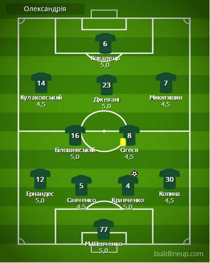 Заміни «Олександрії»: Шостак – 5,0; Шулянський – 5,0; Андрейчук – 5,0; Безерра – 5,0; Смирний – б/о.