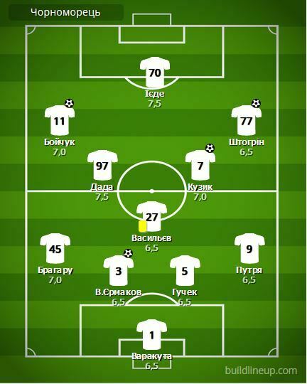 Заміни «Чорноморця»: Бадібанга – 6,5; Хадіда – 6,5; Вакула – 6,0; Салюк – б/о; Ухань – б/о.