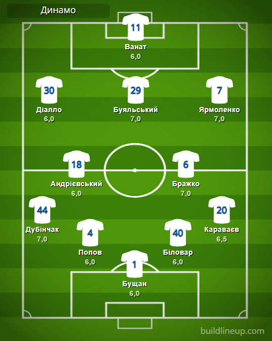 «Динамо» Киев (замены): Волошин – 6,5, Бенито – 6,5, Сирота – 6,0, Малиш – б/о, Рамадани – б/о.