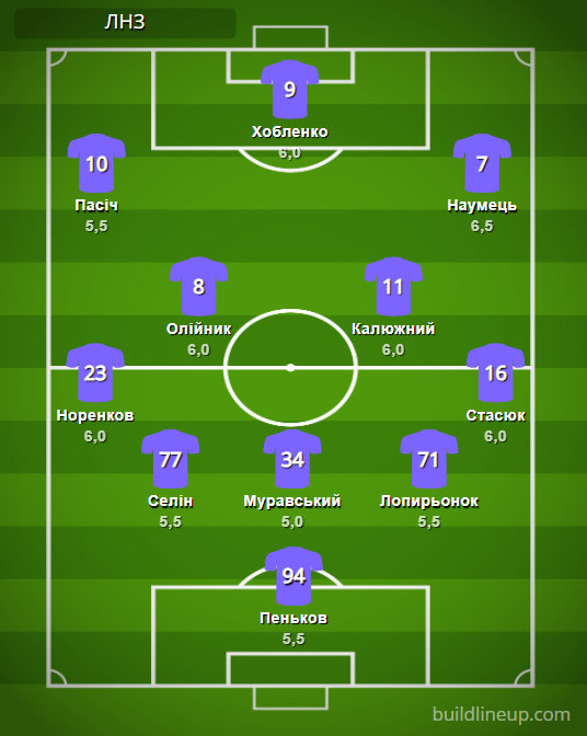 ЛНЗ: Пеньков – Норенков, Селин, Муравский, Лопыренок (Бойко, 33), Стасюк (Савин, 79) – Олийнык (Тищенко, 66), Калюжный – Пасич (С. Шестаков, 66), Хобленко (Прядун, 66), Наумец.