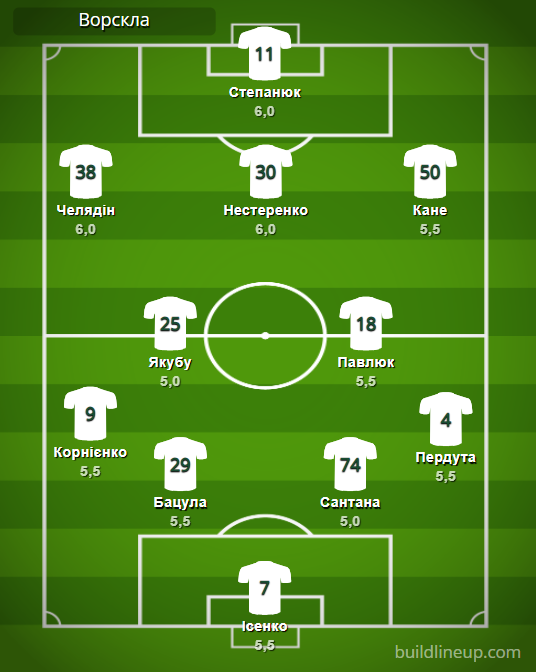 «Ворскла»: Исенко – Корниенко, Бацула, Сантана (Островский, 84), Пердута – Якубу (Хрипчук, 69), Павлюк – Челядин (Крупский, 84), Нестеренко, Кане – Степанюк.