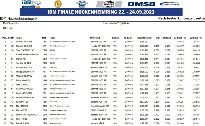 IDM. Михальчик выиграл поул в финале сезона в Хоккенхайме