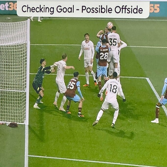 Судья Тони Хэррингтон пошел смотреть повтор на мониторе и в итоге пришел к выводу, что нападающий «Ман Юнайтед» Расмус Хойлунд сильно мешал вратарю «Бернли» Джеймсу Траффорду.