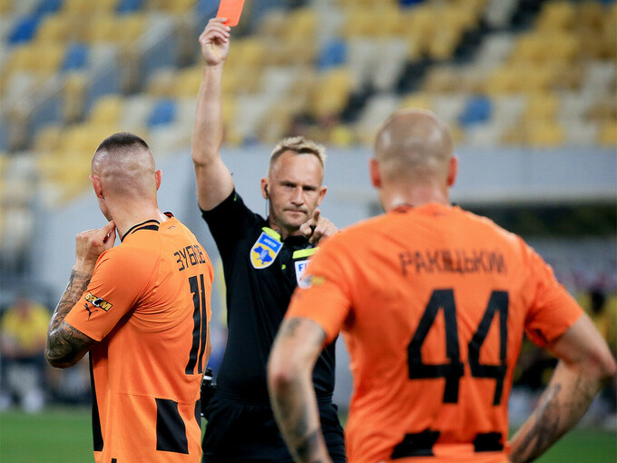 8-ю красную карточку в УПЛ зарабатывает Ярослав Ракицкий.