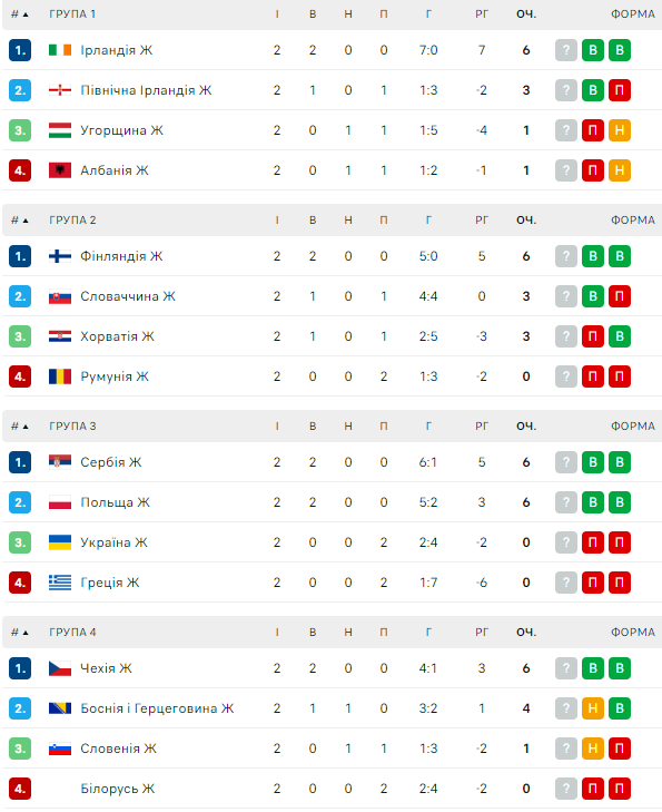 В другом матче сборная Сербии разгромила команду Греции со счетом 4:0 и возглавила группу B3 вместе с Польшей (по 6 очков).