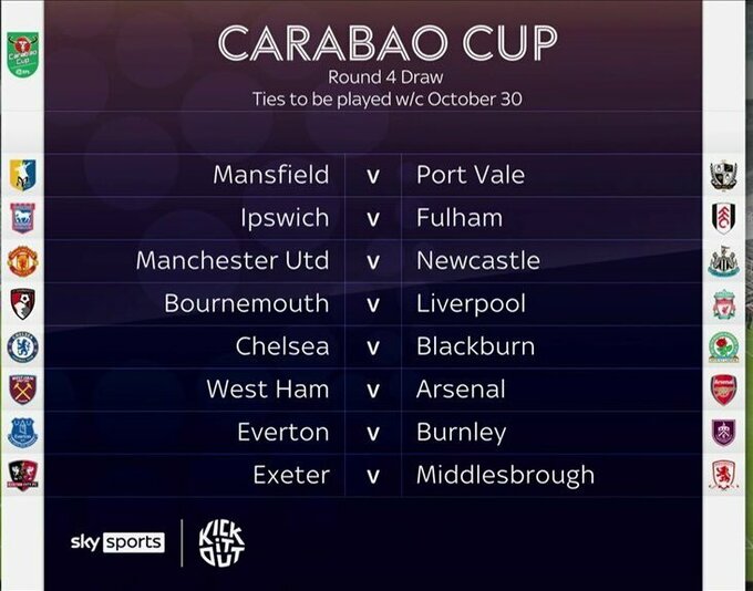 27 сентября состоялась жеребьевка очередной стадии Кубка английской лиги