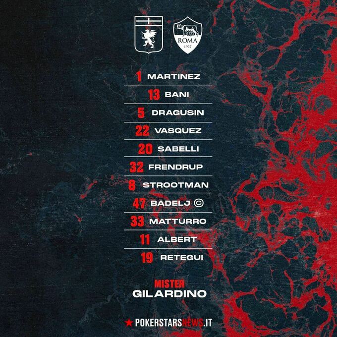 «Дженоа»: Мартинес – Васкес, Дрэгушин, Бани – Маттурро, Френдруп, Бадель, Строотман, Сабелли – Ретеги, Гудмундссон