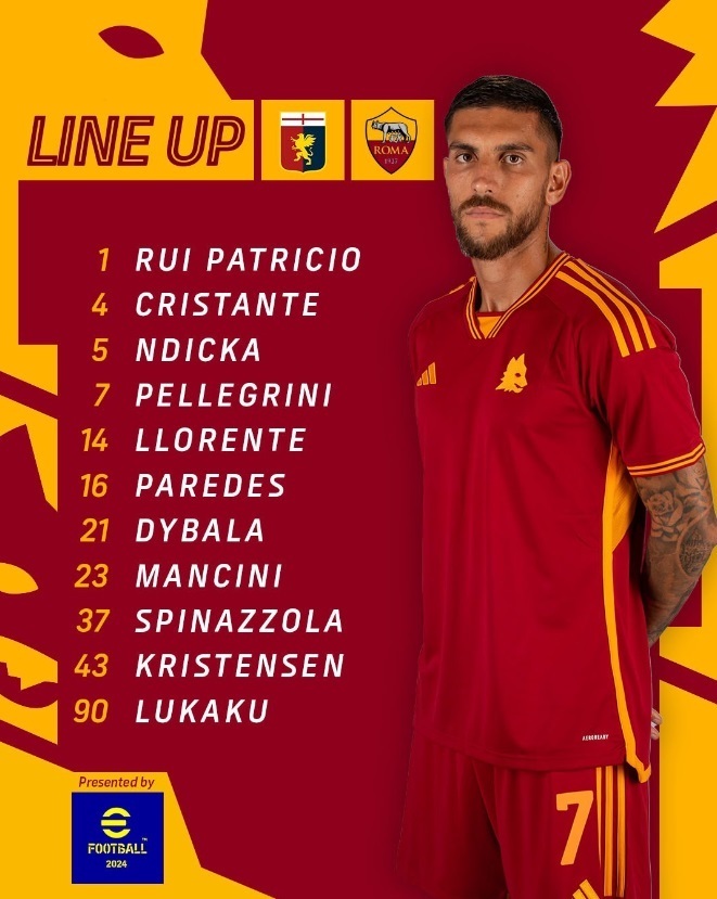 «Рома»: Руй Патрисиу – Ндика, Льоренте, Манчини – Спинаццола, Паредес, Кристанте, Кристенсен – Пеллегрини, Дибала - Лукаку