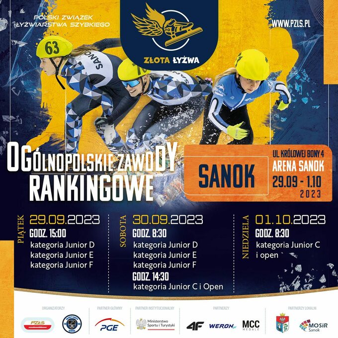 С 29 сентября по 1 октября в польском Саноке пройдут первые Всепольские рейтинговые соревнования по шорт-треку, в которых выступят спортсмены из Польши, Словакии и Украины.