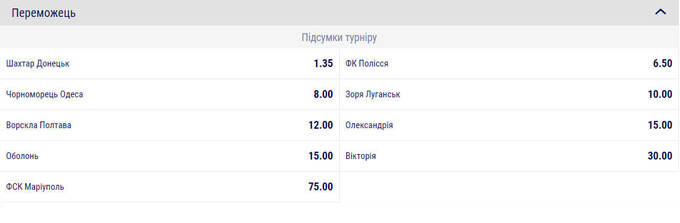 Интересно, что перед матчами 1/8 финала Кубка вторым фаворитом на победу в турнире являлось киевское «Динамо» – 2.25. Однакое «бело-синие» сенсационно вылетели от «Оболони», проиграв в киевском дерби со счетом 0:1.
