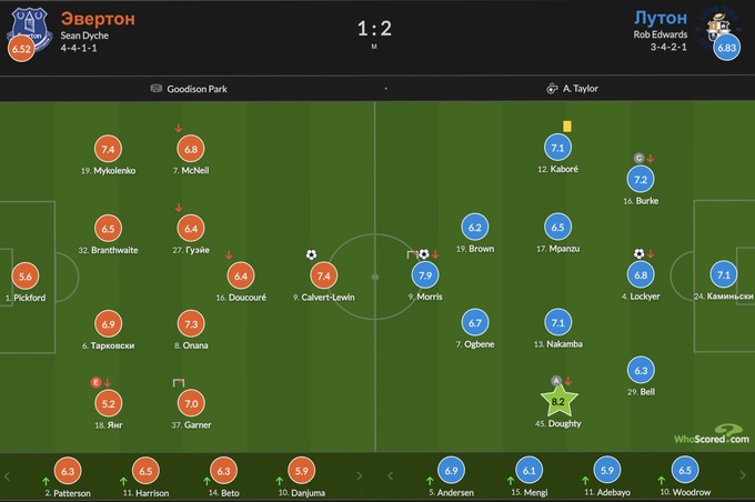 Ливерпульский «Эвертон» на домашней арене уступил новичку АПЛ «Лутон Таун» со счетом 1:2.