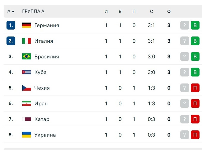 Вообще, если говорить о старте группы А, матчи которой проходят в бразильской столице Рио-де-Жанейро, то два явных фаворита одержали победы. Бразилия в трех сетах одолела Катар, а Италия, хотя и уступила первую партию волейболистам Чехии, затем без особых проблем выиграла три следующие. В еще одном поединке этой группы Германия со счетом 3:1 нанесла поражение Ирану.
