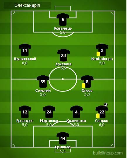 «Александрия»: Ермаков, Эрнандес (Шостак, 23), Мартынюк, Кравченко, Скорко (Гарькавенко, 76), Смирный, Сигеев, Шулянский (Микитишин, 62), Джевани (Безерра, 62), Калитвинцев, Ковалец (Андрейчук)