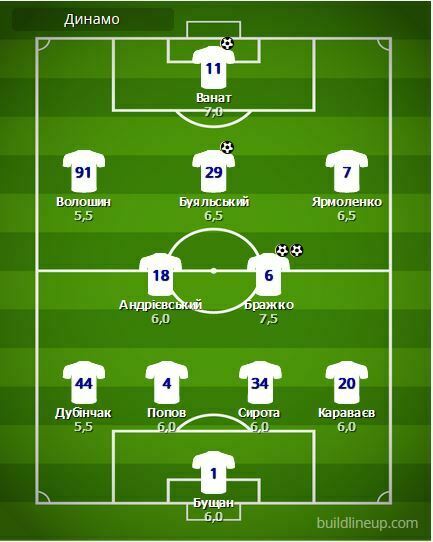 Заміни «Динамо»: Шепелєв – 6,0; Кабаєв – 6,5.