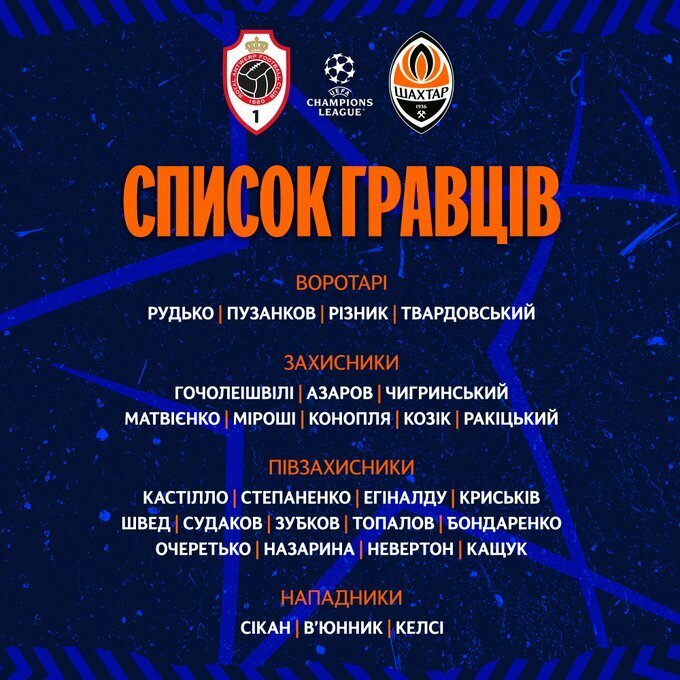 Вечером 2 октября «Шахтер» прибыл на матч 2-го тура группового этапа Лиги чемпионов против «Антверпена». Наставник Патрик ван Леувен взял на игру 28 футболистов.