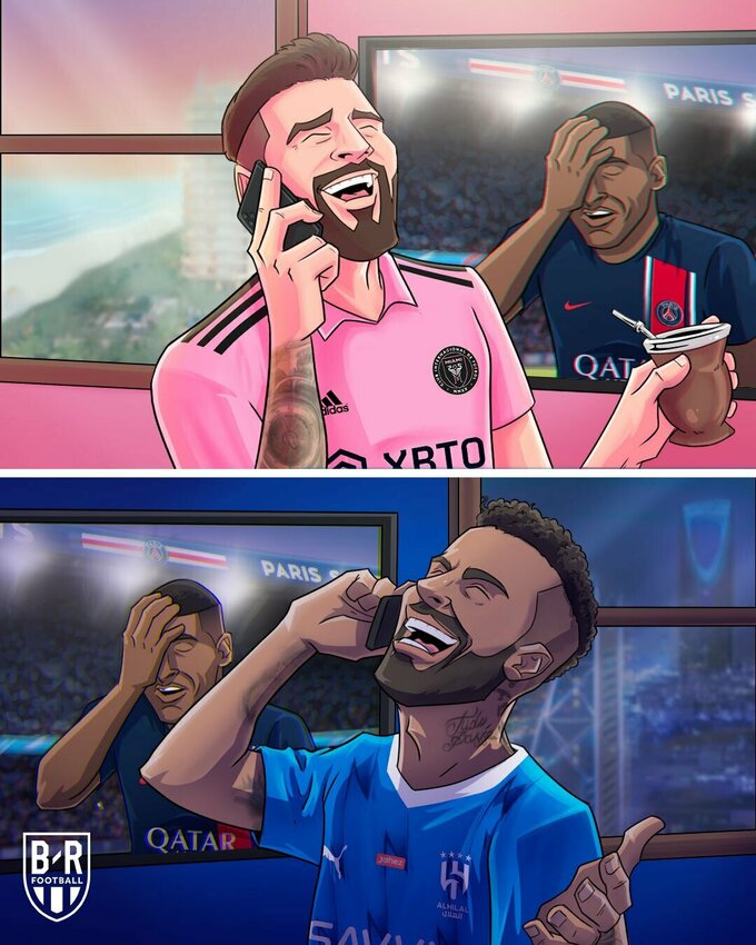 Портал Bleacher Report пофантазировал на тему того, как бывшие лидеры парижан Лионель Месси и Неймар могли бы отреагировать на это поражение, изобразив их веселый разговор по телефону.